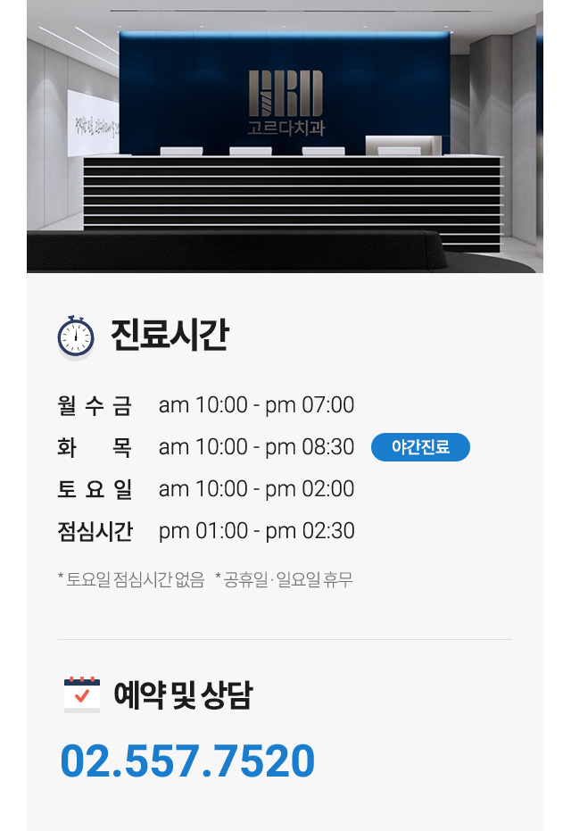 서울특별시 서초구 서초동 1309-6 서호빌딩 8, 9층 고르다치과 강남역 10번 출구에서 500m 도보 7분 신논현역 7번 출구에서 495m 도보 3분