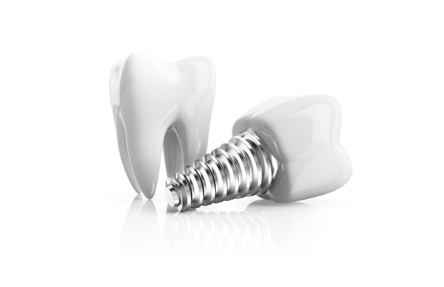 임플란트는 자연 치아가 빠진 부위의 턱 뼈에 금속으로 만들어진