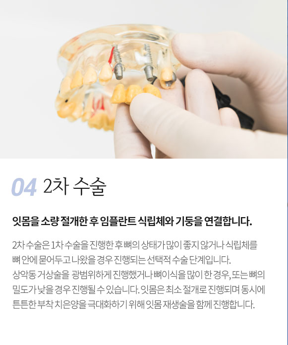 임플란트 수술 후 출혈, 통증, 붓기, 임플란트 주위염 등의 부작용이 있을 수 있습니다.