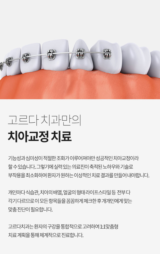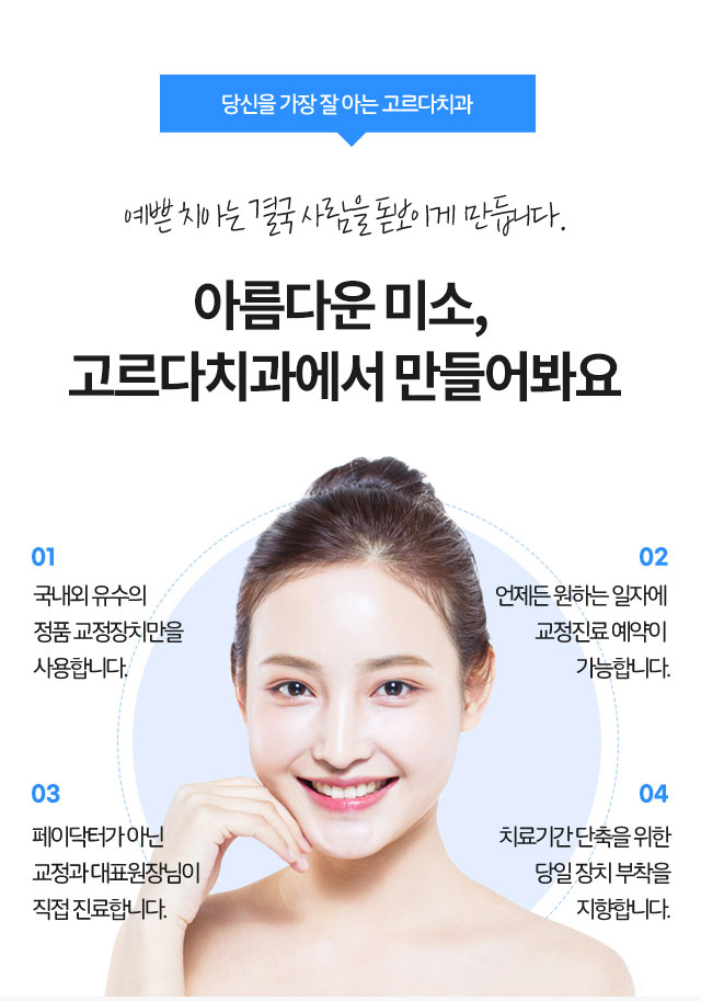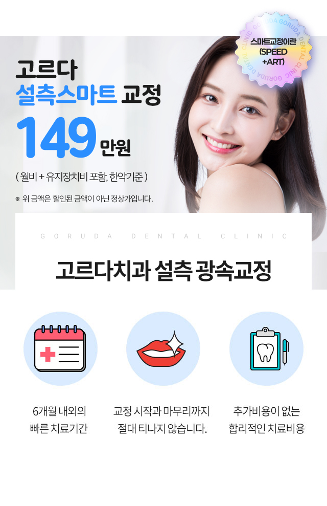고르다 치과의 스마트교정(SPEED+ART)으로 빠르고 아름답게, 미소를 만들어갑니다.