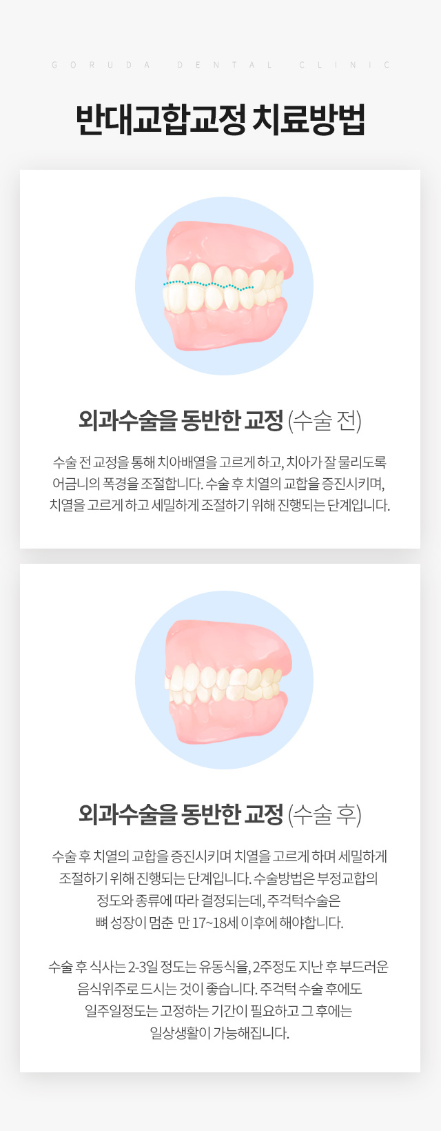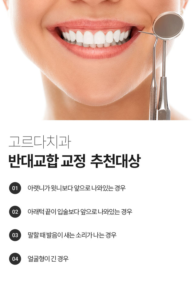 거꾸로 물리는 치아 그동안 불편하셨나요? 건강과 아름다움 모두 잡을 수 있습니다.