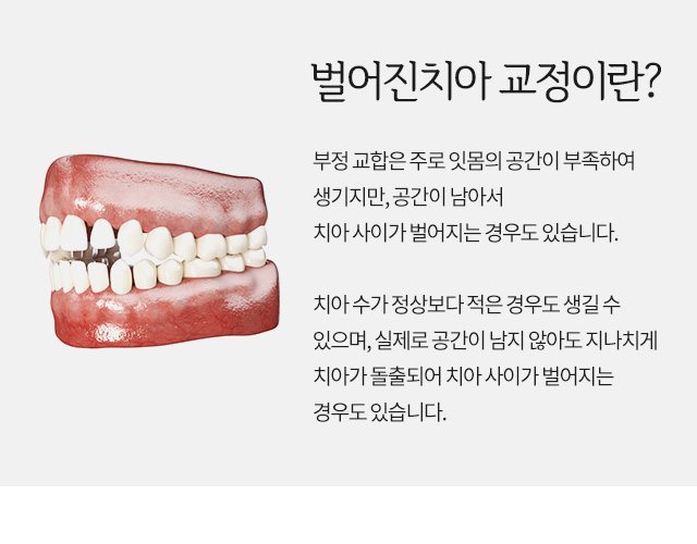 벌어진치아 교정치료를 통해 벌어진 치아의 공간이 닫히면서 세련되고 지적인 이미지를 구축하실 수 있습니다.