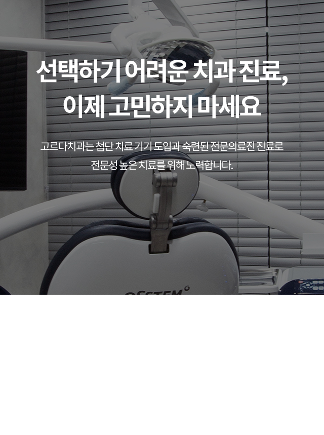 고르다치과는 철저한 관리로 깨끗하고 믿을 수 있는 진료 환경을 제공합니다.