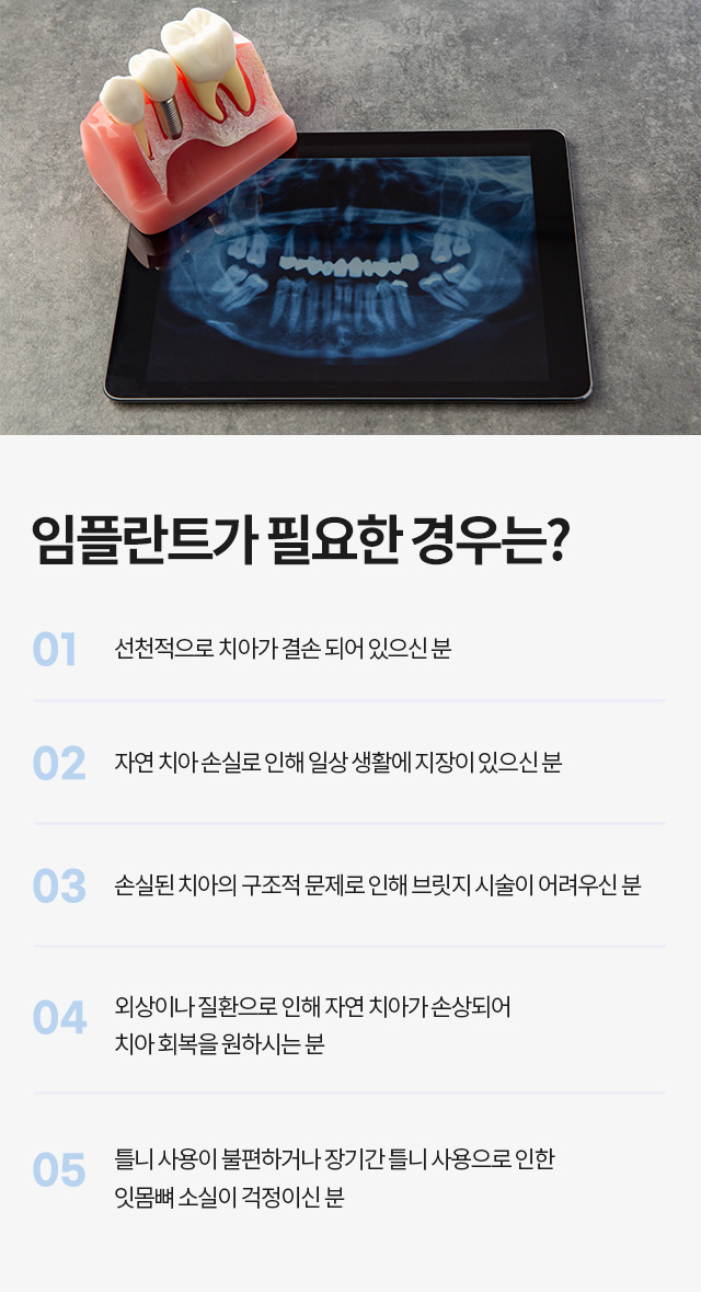 치료 방법으로 간단한 수술이 아니기 때문에 임플란트 임상경험이 풍부하며