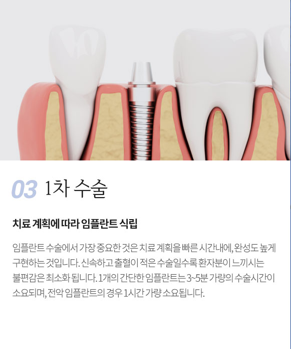 임플란트 수술 후 출혈, 통증, 붓기, 임플란트 주위염 등의 부작용이 있을 수 있습니다.