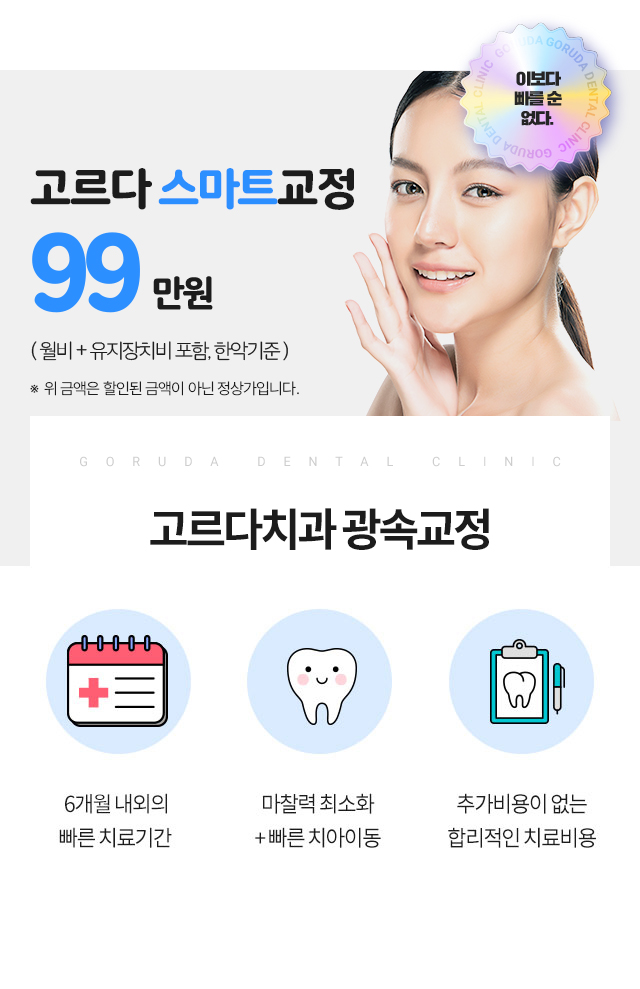 고르다 치과의 스마트교정(SPEED+ART)으로 빠르고 아름답게, 미소를 만들어갑니다.