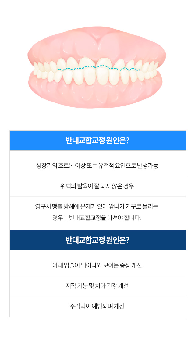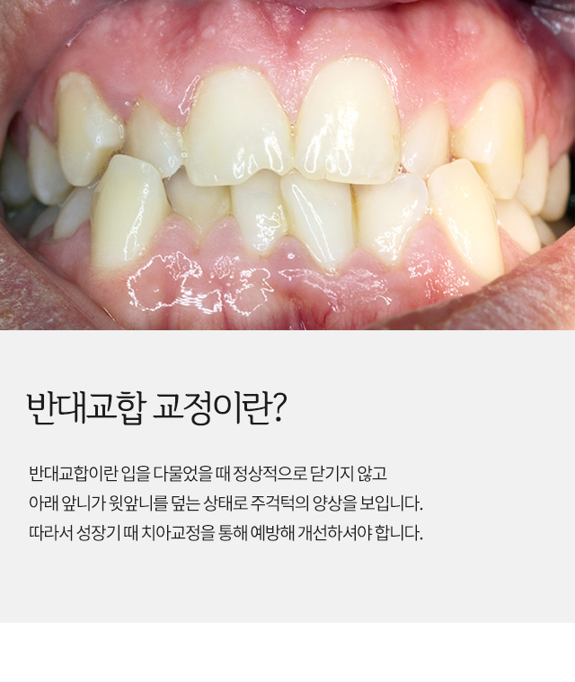 거꾸로 물리는 치아 그동안 불편하셨나요? 건강과 아름다움 모두 잡을 수 있습니다.