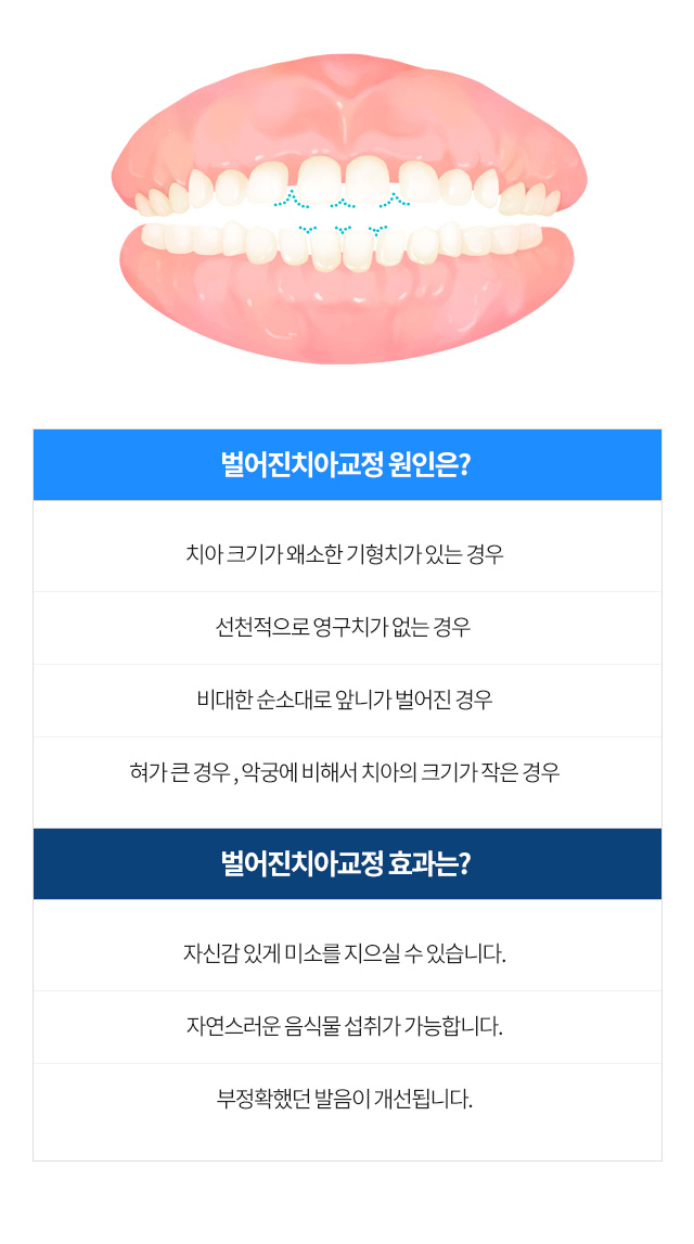 벌어진치아 교정치료를 통해 벌어진 치아의 공간이 닫히면서 세련되고 지적인 이미지를 구축하실 수 있습니다.