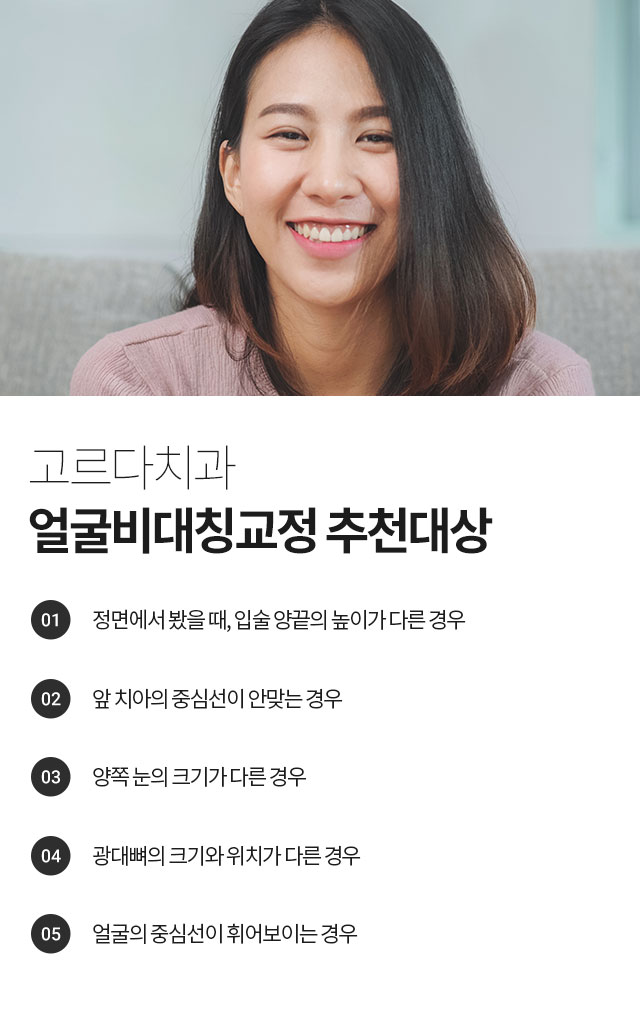 얼굴비대칭 성공적인 치아교정을 하고 싶다면 고르다치과에서!