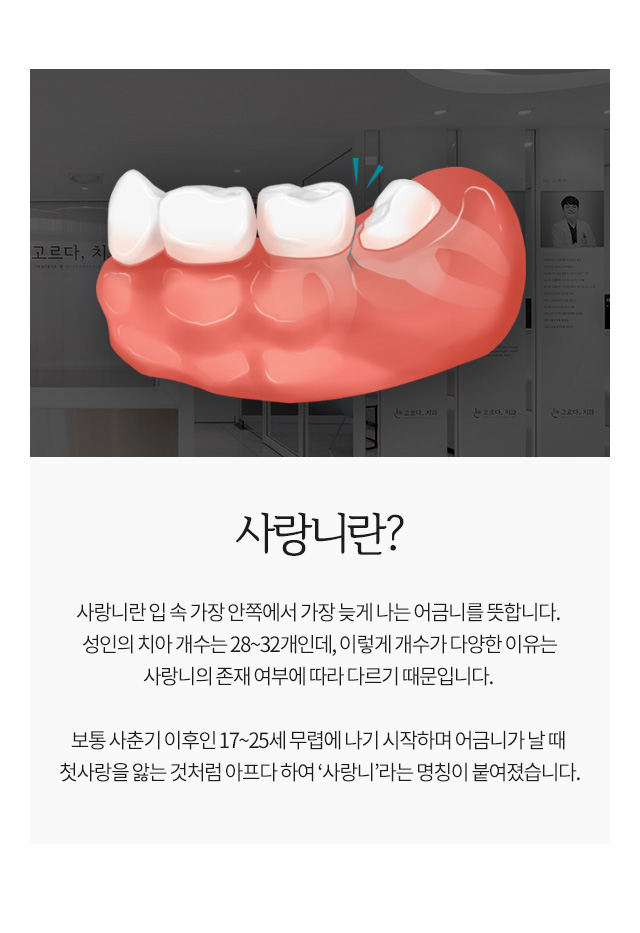 양치질이 쉽지 않아 충치가 생기기 쉬운 사랑니